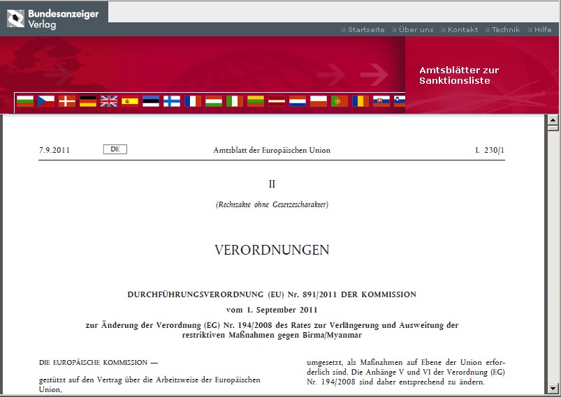 Ein Klick auf den Link zu 'Herkunft' zeigt Ihnen die entsprechende Verordnung an:
