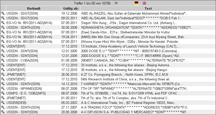 Sie sehen die ersten 50 Datensätze von 10706 Sätzen. Mit